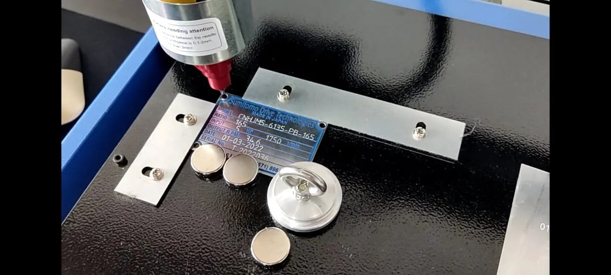 Esta maquina realiza grabado de metales de acero inoxidable, aluminio, hierro, neumática de pines de punto para código Vin.